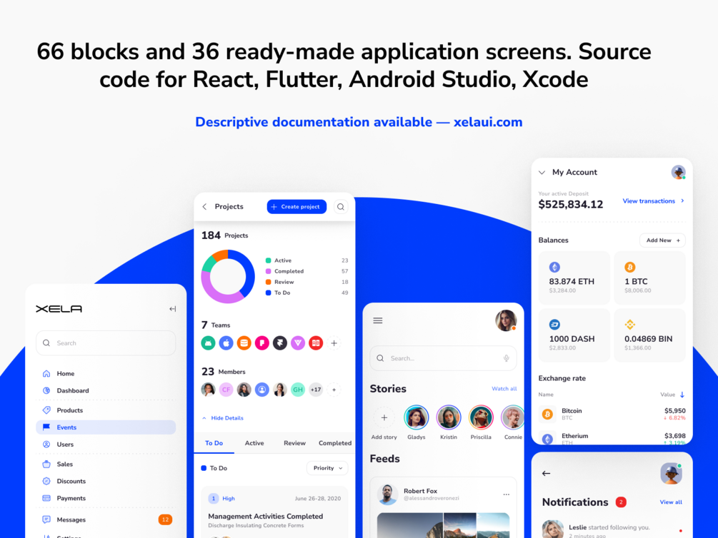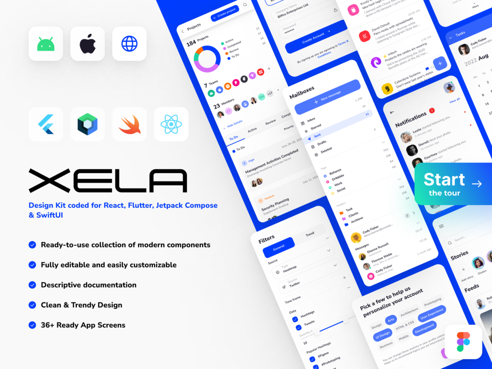 Xela Design & Code Bundle - Figma, React, Flutter, SwiftUI & Jetpack Compose components & ready-made screens.