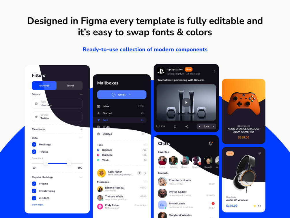 • Designed in Figma, Xela Design System is fully editable and it’s easy to swap fonts & colors