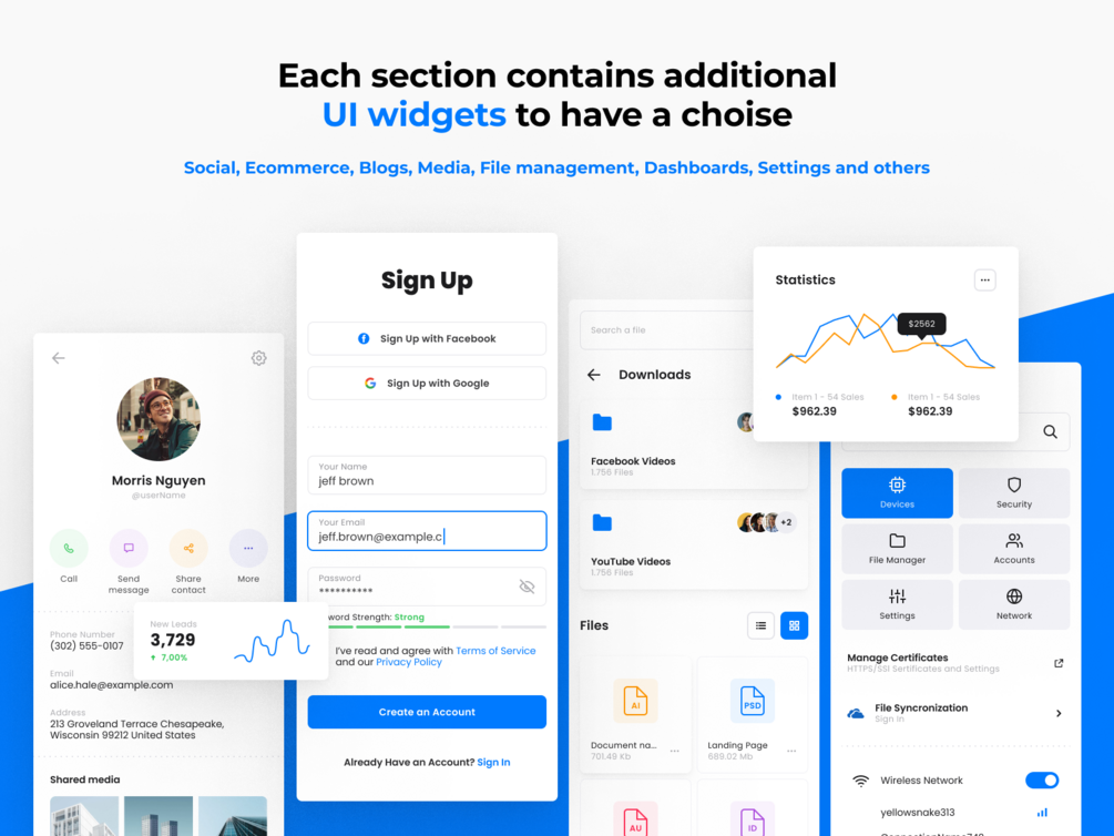 ❖ Layouts categories: Authentication, Blog, Dashboard, Ecommerce, File Manager, Media, Kanban, Navigation, Pricing Plans, User's Profile, Settings, Social and more to come in upcoming updates...